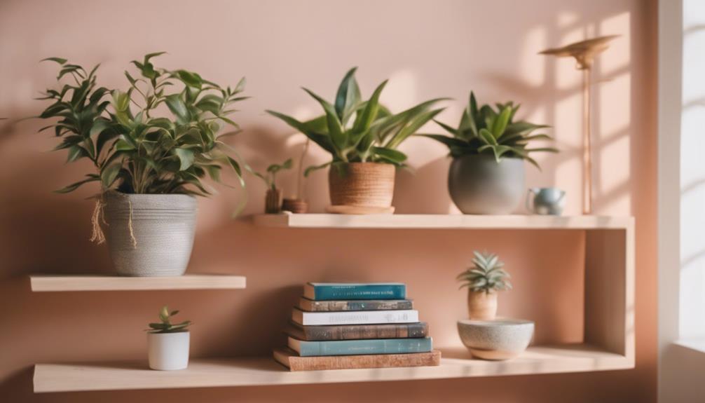Aesthetic wall shelves are the perfect solution for adding style and storage to your space. You can choose from various colors, materials, and textures to match your decor, whether you prefer rustic wood or sleek metal. Floating shelves save floor space while transforming your walls into beautiful displays. Don't forget to enhance them with warm LED lighting or decorative elements like ceramic pots and vintage art pieces for extra charm. Each choice contributes to a cohesive look that reflects your personality. Stick around to discover how you can further elevate your home's aesthetic and functionality!