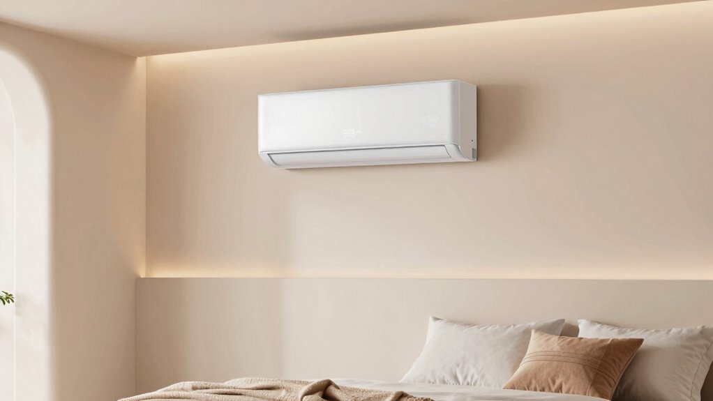 Have you ever experienced waking up in the middle of the night because your air conditioner was too loud? If so, you’re not alone. Noise levels are measured in decibels (dB), with quieter units operating below 40 dB, resembling a whisper. Many models specify their noise output in their product details, often ranging from 30 to 56 dB depending on the mode and speed. Running the AC at lower fan speeds usually results in quieter operation, which is perfect for sleeping. Some units also feature sleep or quiet modes that automatically reduce noise during nighttime use. Keep in mind, noise levels above 50 dB can be disruptive, impairing your sleep quality. Prioritizing quiet operation is essential for a restful, undisturbed night.