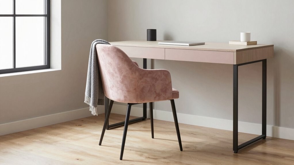 Are you struggling to find the perfect desk chair that keeps you comfortable and supported throughout long work or study sessions? If so, it’s time to consider how your chair’s ergonomic features and material choices can blend seamlessly with your decor while providing the support you need. The right balance of comfort and style is key, especially when you spend hours sitting. First, think about ergonomic features that promote good posture, such as adjustable height, lumbar support, and tilt mechanisms. These features help prevent aches and pains, ensuring you stay comfortable and focused. A chair with adjustable armrests and a breathable backrest allows you to customize your seating position, which is essential for long periods at your desk. When it comes to material choices, you’ll want options that not only match your aesthetic but also offer durability. Leather or faux leather chairs give a sleek, professional look and are easy to clean, making them suitable for modern or minimalist decor. Mesh chairs, on the other hand, provide excellent ventilation, keeping you cool during intense work sessions. If your design leans toward a more cozy or eclectic vibe, fabric upholstered chairs can add warmth and texture, while still offering comfort. Consider how the material of your chair complements your existing furniture and color scheme. Neutral tones like black, gray, or beige tend to blend effortlessly into most setups, while bold colors like deep blue or rich burgundy can serve as statement pieces. It’s also worth noting that some material choices may require regular maintenance to keep them looking their best. For example, leather benefits from conditioning to prevent cracking, while fabric may need occasional vacuuming to remove dust. Additionally, understanding the importance of proper indoor air quality and humidity control can help you maintain a healthier workspace, especially if your furniture and materials are sensitive to environmental factors. Incorporating ergonomic design principles into your chair selection can significantly improve your comfort and reduce fatigue over time. Proper posture support, for instance, is crucial in preventing long-term health issues related to sitting. Moreover, selecting a chair with adjustable features can allow you to fine-tune your setup for optimal comfort and productivity. The shape and style of the chair should also harmonize with your workspace. Sleek, minimalist designs often suit contemporary interiors, while more ornate or vintage styles work well with traditional decor. Balance is key—select a chair that enhances your space without overpowering it. When considering your overall workspace environment, it’s essential to address ergonomic workspace setup to maximize comfort and efficiency. Remember, the goal is to find a chair that supports your health and productivity without clashing with your aesthetic. By paying attention to ergonomic features and material choices, you can choose a desk chair that feels right at home in your decor, making your workspace both functional and visually appealing. Ultimately, investing in the right chair means investing in your comfort and style—so take your time, test different options, and pick one that truly fits your needs.