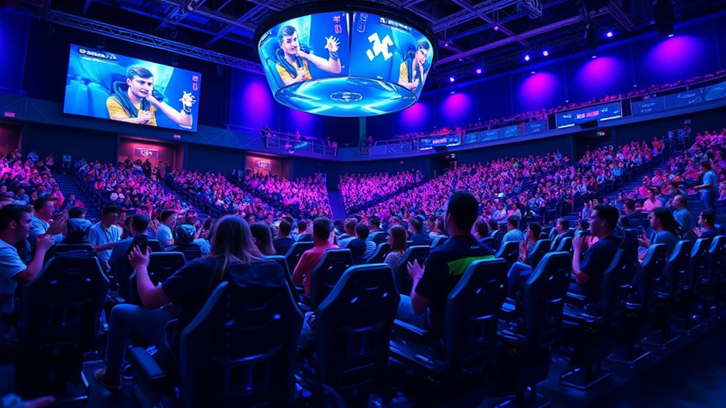 By 2025, e-sports will be fully embedded in mainstream entertainment, drawing millions of viewers and attracting major brand sponsors. You’ll see larger, more polished tournaments with bigger prize pools, featuring top players and broad audiences. The industry’s growth is driven by technological advances, media coverage, and strategic sponsorship deals that turn competitive gaming into a cultural phenomenon. Stay tuned to discover how this shift continues to reshape entertainment and digital culture.
