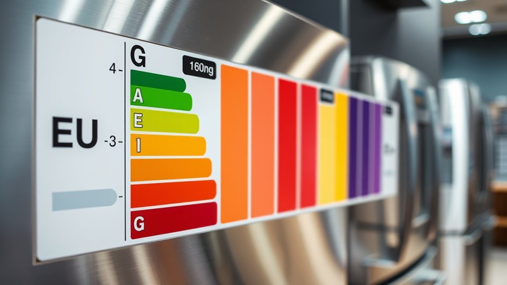 With the new EU energy labels in place, consumers can now make more informed choices by carefully comparing appliance ratings. Look beyond just the rating letter—consider appliance longevity and how well it fits with your smart home integration. Higher-rated appliances often last longer and save energy over time, providing better value. To make smarter decisions, keep these tips in mind: